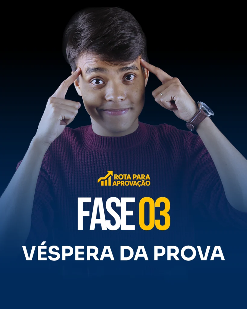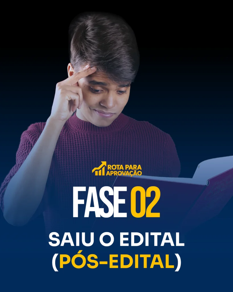 Atualmente, a dificuldade dos concurseiros não está em adquirir materiais (ainda mais em tempos de Inteligência Artificial), mas sim em como lidar com toda essa enxurrada de informações que o universo dos concursos públicos impõe. O que fazer para estudar tudo? Ou melhor, COMO estudar tudo isso? E é exatamente nesse ponto que entra a Rota para Aprovação! Um método seguro, no qual você saberá exatamente COMO estudar de forma eficiente, e O QUE fazer diariamente, maximizando seus estudos até a sua aprovação.